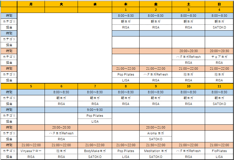 週によって開催レッスンが異なりますので詳細は画像をチェック!